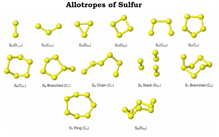 Sulfur, for example, has two types of allotropes – monoclinic and the